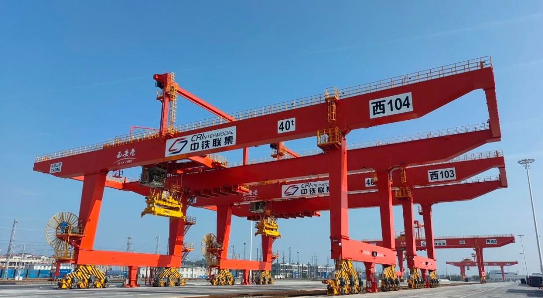 西安鐵路集裝箱中心站是現(xiàn)代化鐵路場站,位于西安市東北郊的國際港務(wù)區(qū)內(nèi),是西安市規(guī)劃的倉儲物流核心區(qū),與鐵路樞紐北環(huán)線新筑車站接軌。據(jù)國鐵集團(tuán)統(tǒng)計,今年1-10月,中歐班列(西安)開行4354自然列,增長32.5%,開行量穩(wěn)居全國第一。從2009年至今,15年間,中鐵山橋為西安鐵路集裝箱中心站提供了多臺40噸軌道式集裝箱門式起重機(jī),為場站擴(kuò)能發(fā)展、優(yōu)質(zhì)提效做出了突出貢獻(xiàn),助力“一帶一路”中歐班列跑出“加速度”。